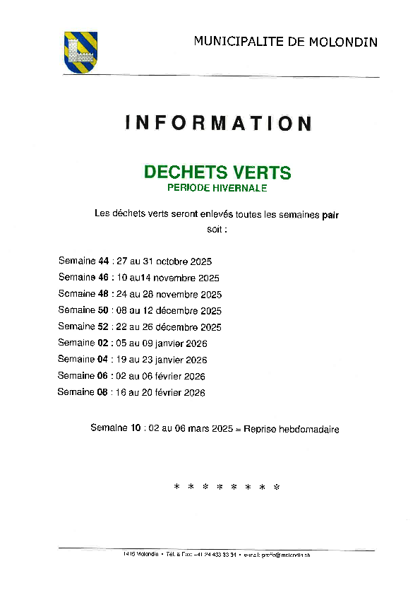 Le prochain Conseil Général se tiendra le mercredi 3 décembre 2025 à la grande salle.